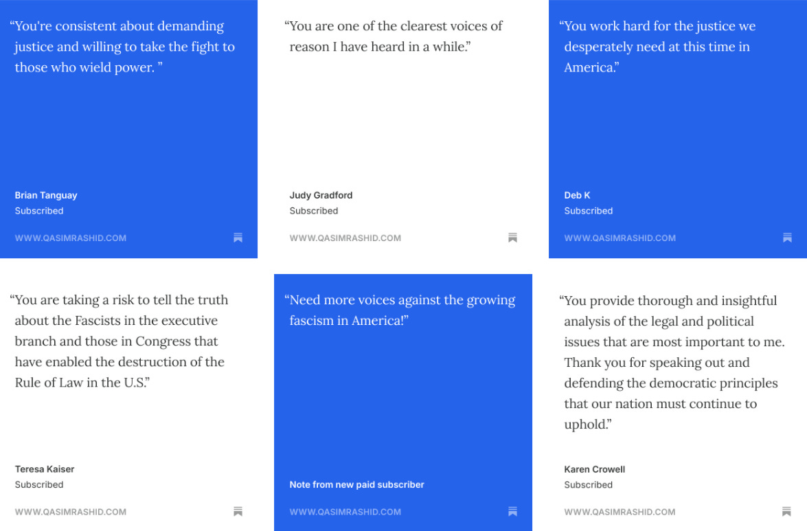 Jump in. Become a paid subscriber at a cup of coffee ($6) a month or $50 a year. We are not funded by billionaires. We are supported by We the People. For context, if you subscribed at $50/year just 1 year ago, you would have spent a whopping 13 cents per post.