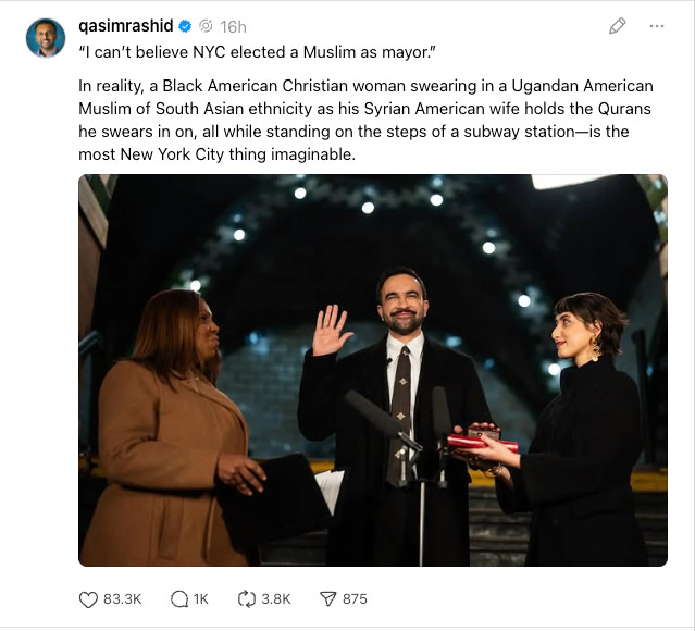 That combination—authentic representation, unapologetic justice, and principled conviction—is exactly what this moment demands. And if (when) it succeeds in New York, it can succeed elsewhere. This is not just a local victory; it is a governing model. One that says we do not need to choose between courage and competence, between values and results.