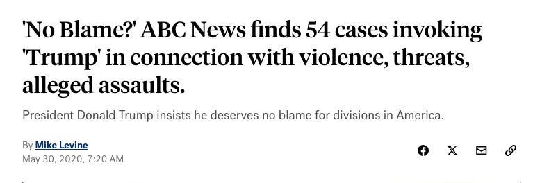 And speaking of attacks, Trump’s aforementioned incitement to terrorism is not new. An ABC News study from 2020 found that Trump’s violent rhetoric ignited actual violence at least 54 times: