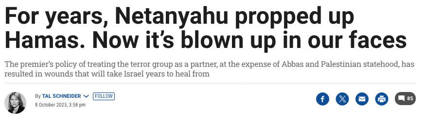 The United States government designated Hamas as a terrorist organization in 1997. In his September 3 press conference, AG Garland made explicit that his terrorism charges against Hamas leadership are, in major part due to, “extensive funding for Hamas’ terror wing.” This is not controversial. Criminal accountability for funding a designated terrorist organization has long been part of American legal jurisprudence. The next logical question is, therefore, when will AG Garland file charges against Netanyahu for helping fund Hamas—as Netanyahu himself has admitted? The Times of Israel reported in an article published on October 8, 2023: