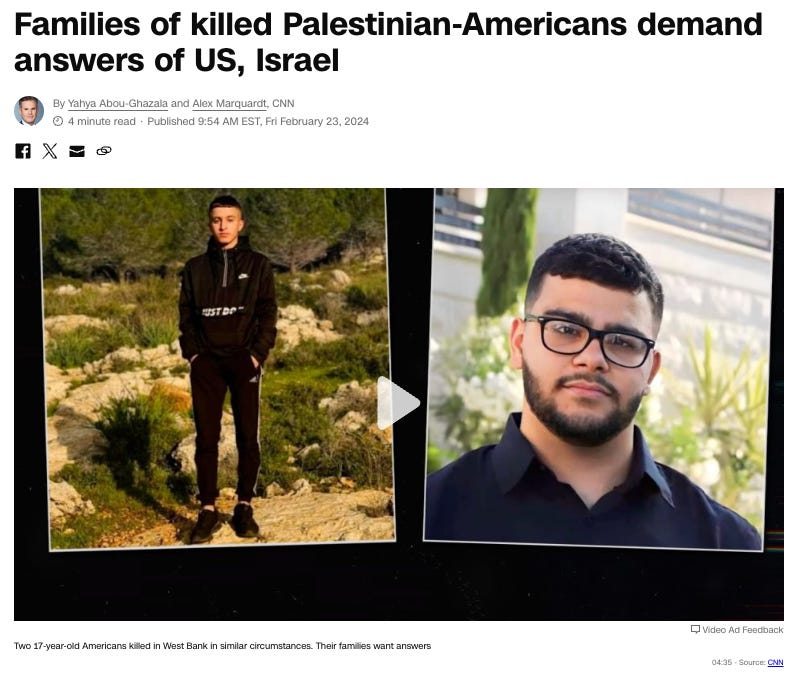 The above examples are not anecdotes, but part of a disturbing trend. For example, last February Israeli terrorists killed two American citizens in the West Bank—both were young teens, still children. But aside from empty words of condolences offered to their families, the U.S. Government has offered no accountability for those who killed these American children. This hypocritical trend is unjust and unsustainable.