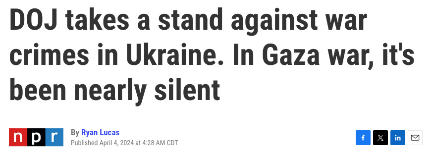 Instead, as NPR reports, while U.S. officials are loud in condemning Putin for killing Ukrainians, they’re silent about Netanyahu killing Americans: