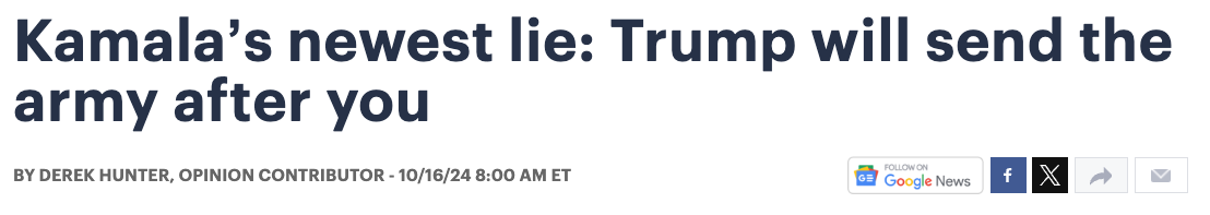 Right before the 2024 election, The Hill ran an article with the headline: "Kamala’s newest lie: Trump will send the army after you." Written by a right-wing Heritage Foundation operative with zero disclosure of his political affiliations or dark money backers, the piece labeled then-Vice President Harris a liar for warning that Trump might use the military on American citizens.