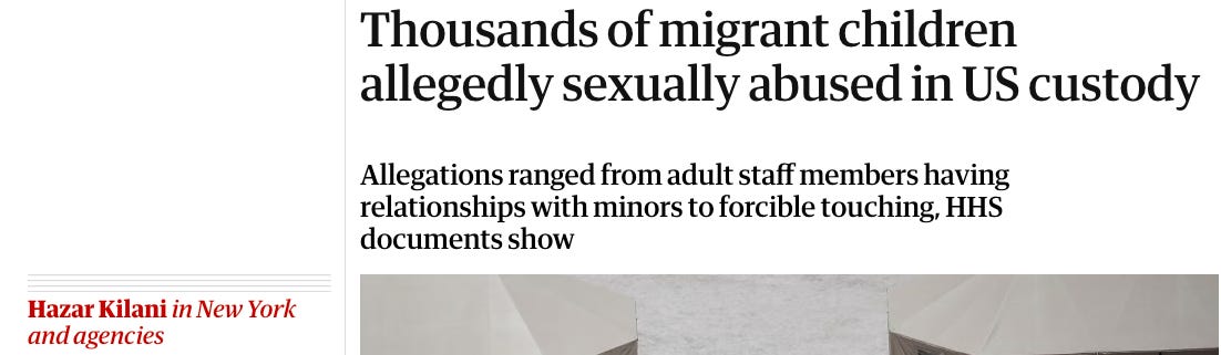 And these are only the murders and deaths we know of. It also doesn’t account for the near 5000 documented cases of ICE and Border Patrol committing child sexual abuse of migrant children—as reported by The Guardian.