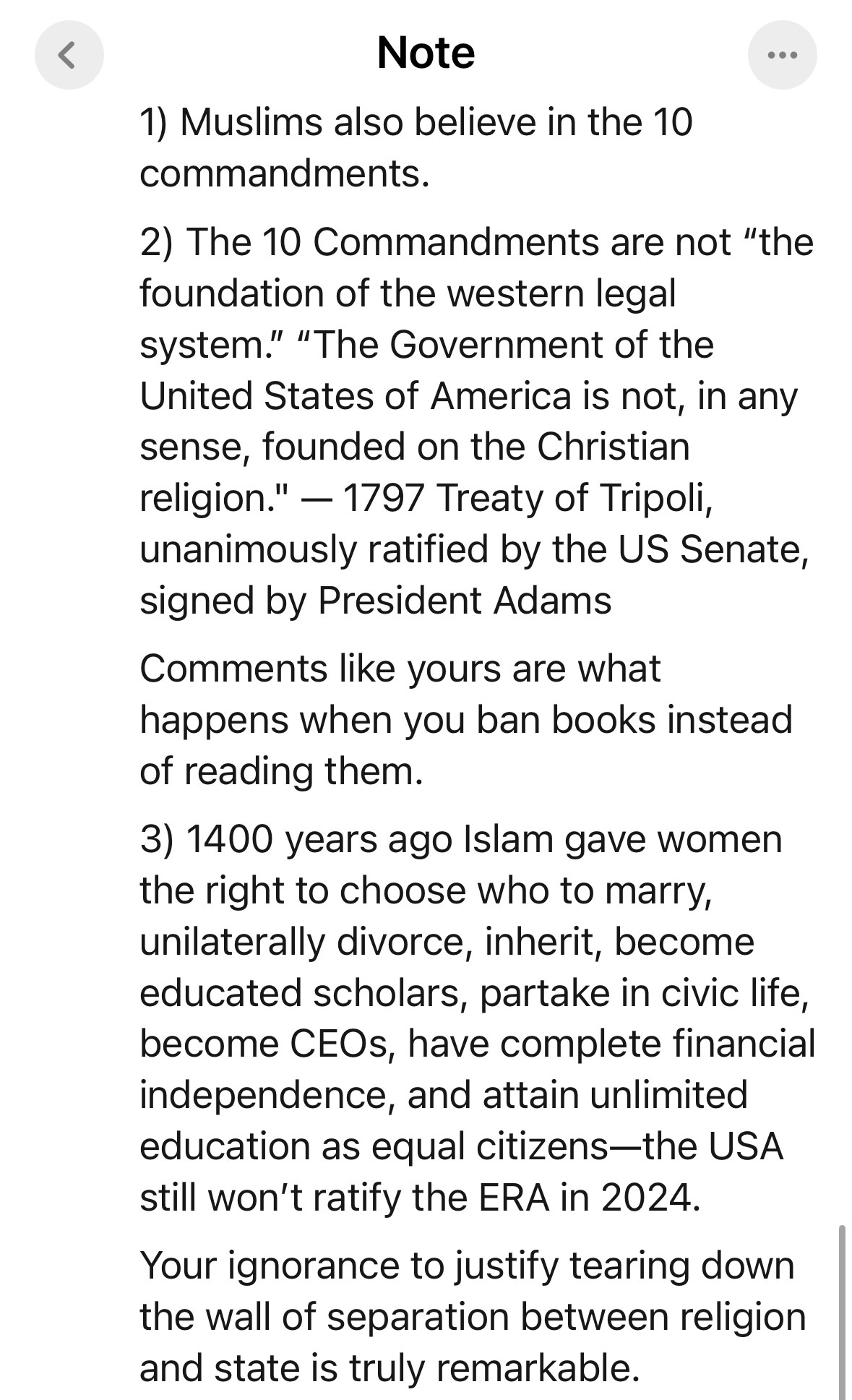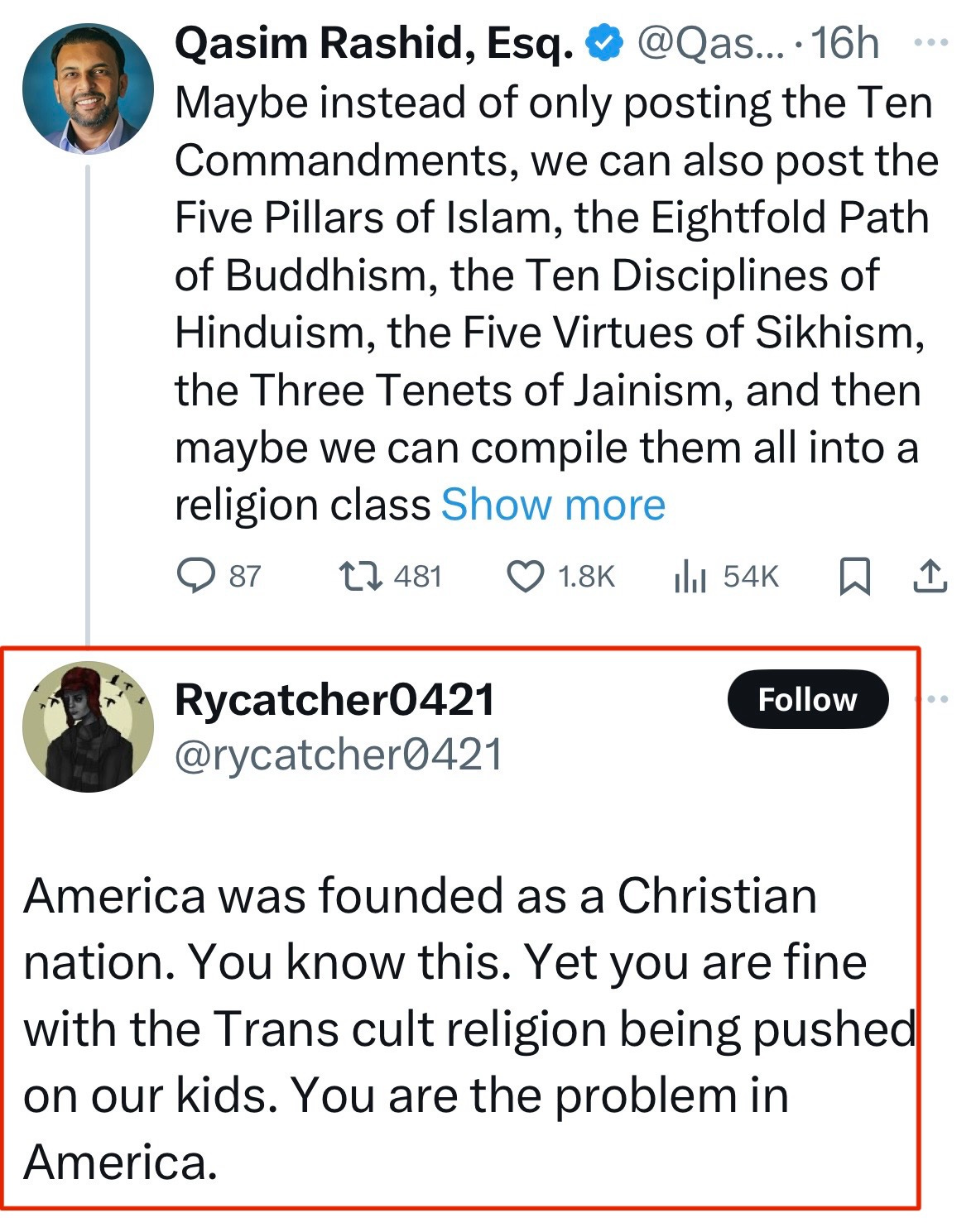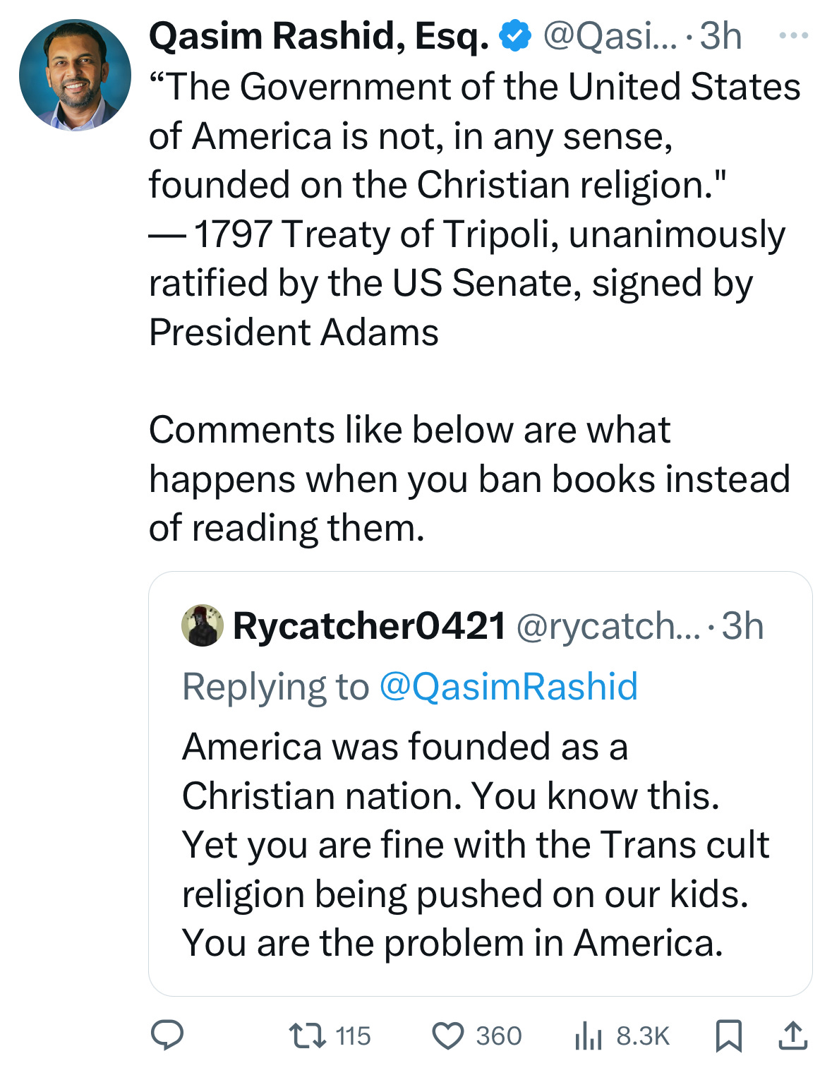 In response, I shared the factual receipts that the Government of the United States is not, in any sense, founded on the Christian religion.