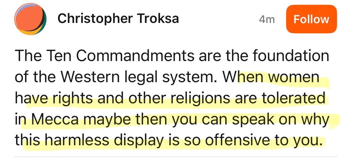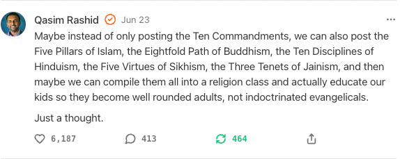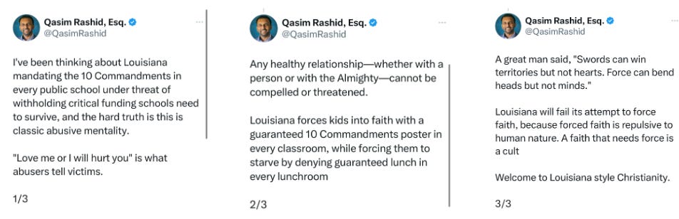 It all started when I posted two tweets condemning a Louisiana law mandating displaying the 10 Commandments in public schools. I was frustrated that Louisiana continues to neglect the health and well-being of their own children, yet is ready to enforce religious instruction in the classroom. Yes, they really are.