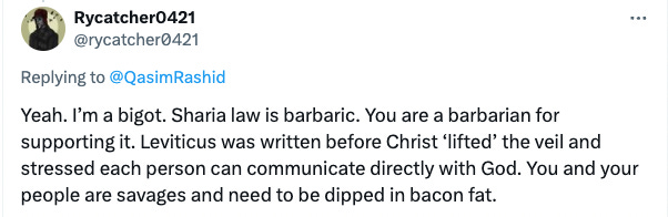I followed up with a short thread pointing out that compulsion in matters of faith is ineffective, extremist, and a failing strategy altogether.