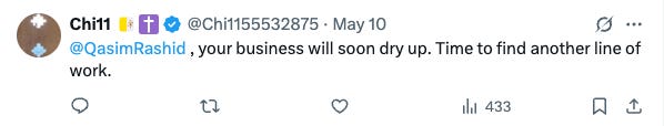 I periodically share this more personal side of my advocacy for human rights because it is important to me that you, my gracious supporters, see what I see. Apologies in advance for the vulgar language in the screen shots below. I discuss the above question in a new issue of “Hate Mail of the Weak.” Let’s Address This