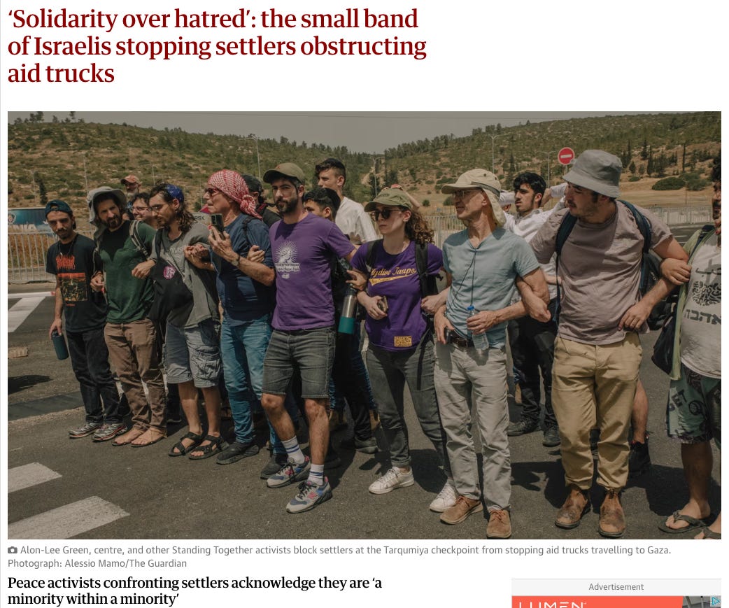 Instead, Netanyahu’s government is doing the opposite. They are using starvation, dehydration, and now incineration as tools of warfare. In just the past five days, the number of hot meals served by community kitchens has dropped 70%—from 840,000 meals to just 260,000—all for a population of nearly 2 million people. And as mentioned, Israelis themselves are sick of Israeli settlers blocking aid, and are putting themselves in harms way to ensure aid gets through.