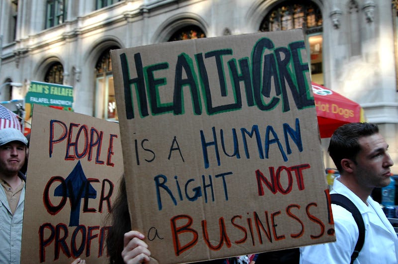 For those who have followed my work, you know I’ve written in detail about America’s Violent Health System, which enables 68,000 annual preventable deaths per the Lancet, and enables 500,000 annual medical bankruptcies. You’ve seen my research debunking every prominent myth against universal healthcare as a human right, and making the case to ensure we move to a guaranteed healthcare system without insurance executives standing between us and our doctors. You’ve read my work where I’ve detailed the exploitative nature of HELL Corporations (Health Exploitation Limited Liability Corporations) and how they exist not to protect our health, but to exploit our illnesses. Meanwhile, as insurance corporations deny us the care we need, they profit more than $88 Billion annually across industries.1