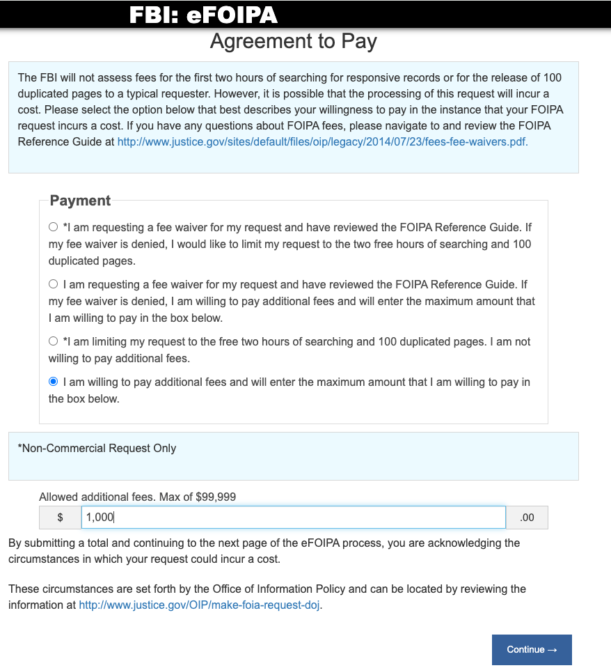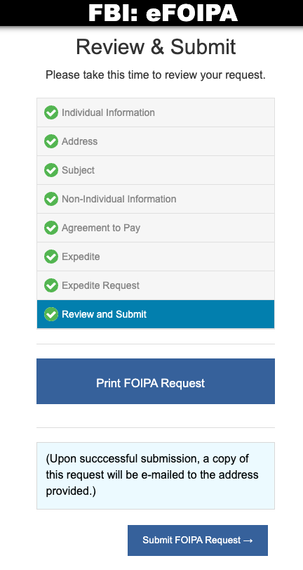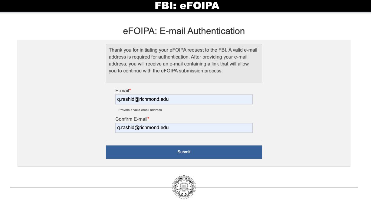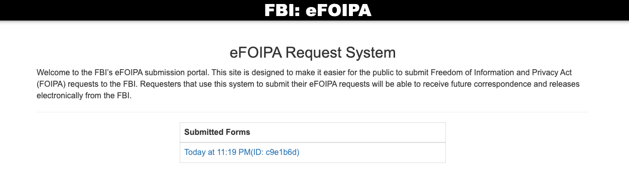 Step 1: Visit the FBI eFOIA portal to file your FOIA: https://efoia.fbi.gov/#home