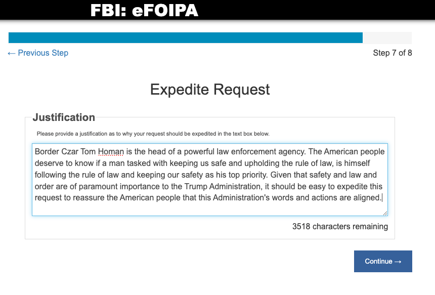 Step 4b. Justify why I am requesting an expedited FOIA.