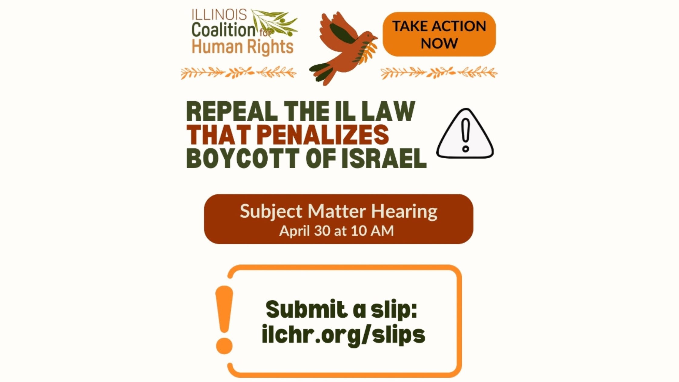 Submit your witness slip. Share the link. Contact your legislators. Make clear that protecting a foreign state from criticism is not the role of Illinois government, and that punishing political expression is incompatible with constitutional democracy.