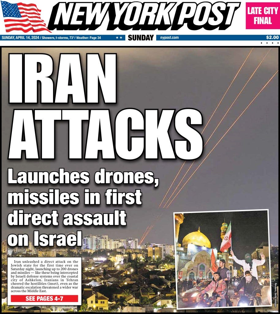 And the New York Post went full propaganda, insinuating Iran initiated the attack, as opposed to the fact that Israel preemptively attacked Iran.