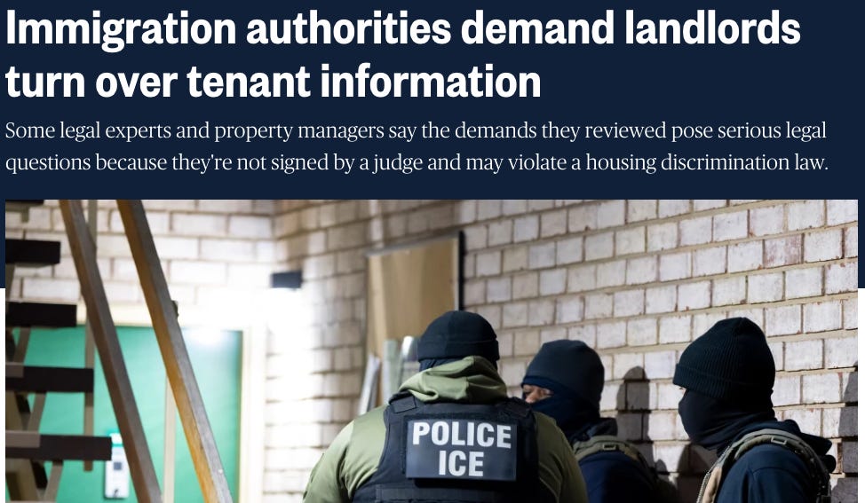 The below piece is a guest post from Zeke Ahmed, a law student at the University of Illinois at Chicago School of Law. It covers a top critical to Let’s Address This, fair housing, illegal ICE raids, and weaponization of law to intimidate immigrants and people of color. Corporate media has barely reported on this epidemic of abuse. Yet, it is critical we remain informed to protect ourselves, and our neighbors, against the rising tide of fascism in this country. Let’s Address This.