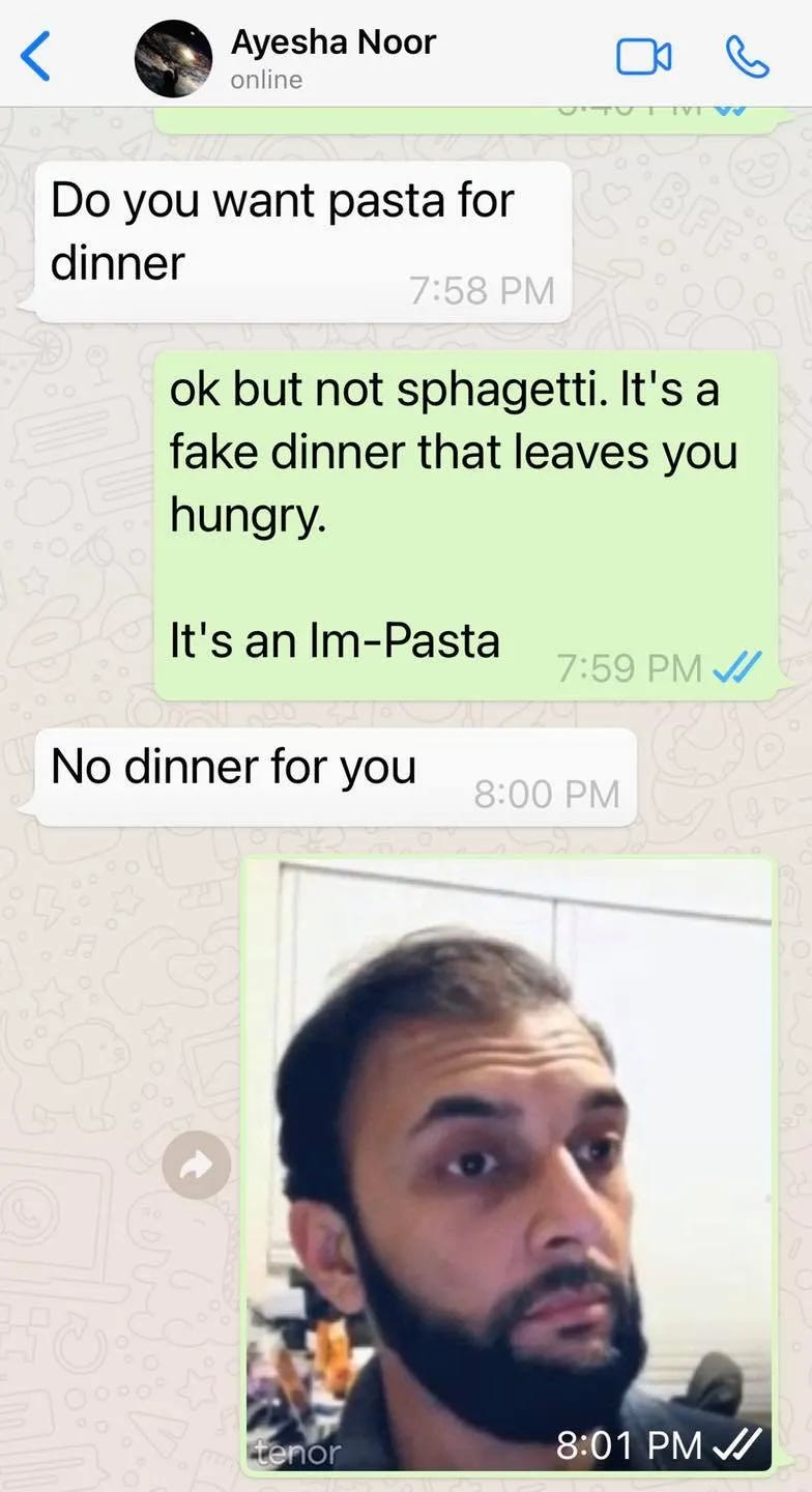 This week’s Dad Joke is straight out of a text convo with my wife Ayesha :)