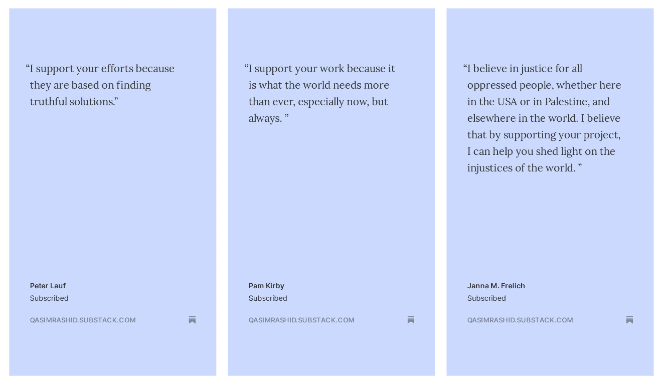 Finally! Here’s what new subscribers to Let’s Address This with Qasim Rashid are saying about why they’ve invested in this human rights project!