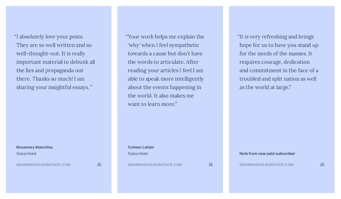 This was by far our best week of Let’s Address This, and the momentum continues to grow with literally hundreds of thousands of readers. Every time you open an email, like a post, share a post, or upgrade your subscription—you’re advancing this human rights project. Thank you for your trust and support. Here’s your quick recap of last week for Let’s Address This with Qasim Rashid: