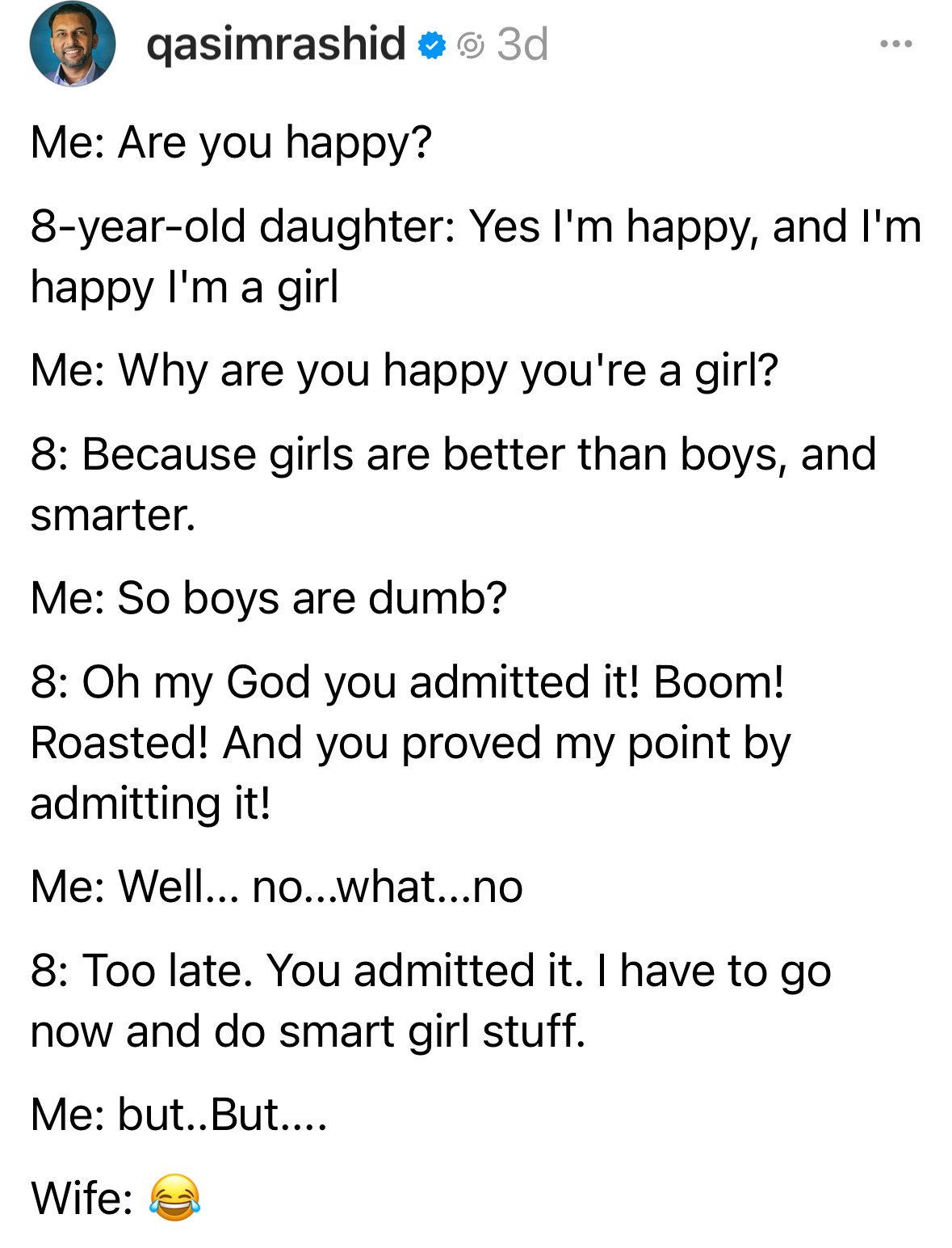You’re rearing a feisty, smart, and adorable child. Keep up the good work! ❤️