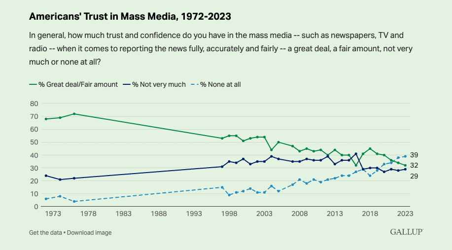 Third, it is therefore no surprise that as legacy media fails us, America’s trust in legacy media is also at historic lows, with recent Gallup polling showing that only 32% maintain trust. With human rights plummeting, media showing grotesque bias, and the public losing trust and unable to find reliable sources, something needs to change.