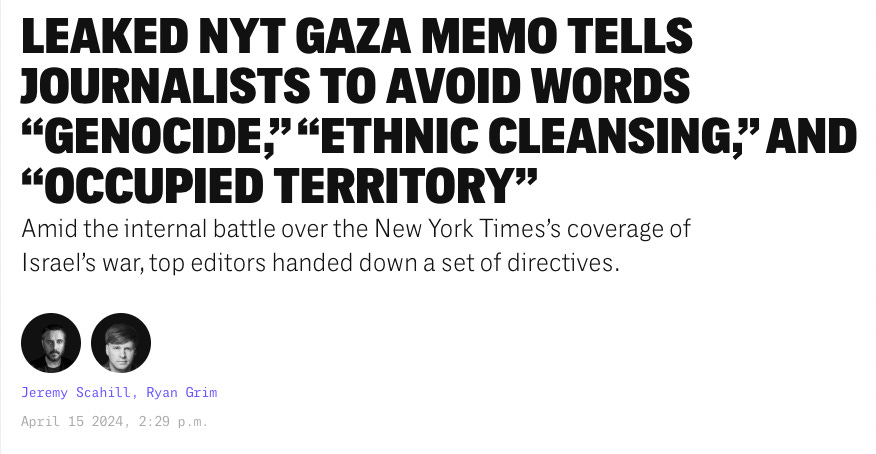 The analysis found that, as of November 24, the New York Times had described Israeli deaths as a “massacre” on 53 occasions and those of Palestinians just once. The ratio for the use of “slaughter” was 22 to 1, even as the documented number of Palestinians killed climbed to around 15,000.