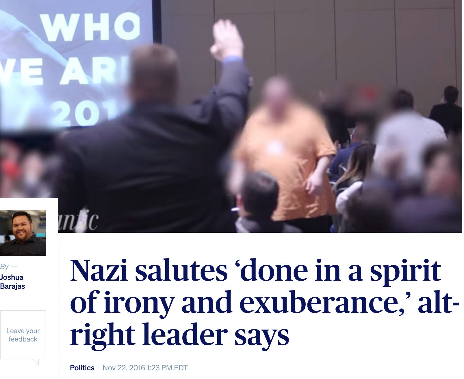 The Southern Poverty Law Center calls Richard Spencer, “one of the country’s most successful young white nationalist leaders.” When Trump won in 2016, Spencer openly celebrated with Nazi salutes, screaming, “Hail Trump.” And lest Girdusky claim Spencer was somehow not a white nationalist “back then,” VICE News quotes Spencer in October of 2013: