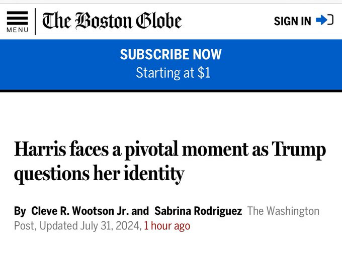 In whitewashing Trump’s racism and repeating his lies without qualification, the Boston Globe, the Washington Post, and the New York Times all proudly demonstrate how legacy media is failing to meet the moment. To recap, Trump engaged in grotesque racism, lies, and white supremacy — and the Globe, the Post, and the Times framed his racism as some legitimate point of consideration, and worse, placed the burden of that racism on Harris, as if she is now answerable for Trump’s racism. This is how democracy dies, in the darkness of misinformation and burden shifting.