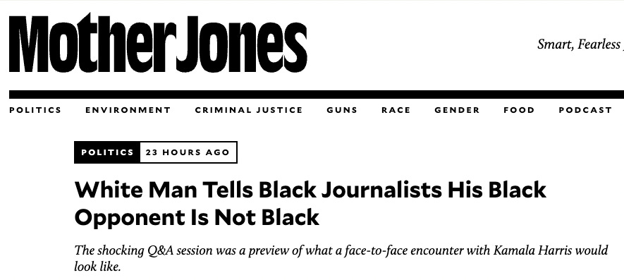 MAGA Republicans of color are literally whitewashing themselves for approval from a racist base that is openly hostile to them—yet have the audacity to question the identity of VP Kamala Harris. And making this situation even worse is the utter failure of legacy media to call out this racism and hold its actors accountable. Consider the headlines after Trump’s racist rant at the NABJ.