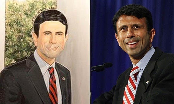 Consider former Louisiana Republican Governor and GOP Presidential Candidate Bobby (Piyush) Jindal’s favorite portrait versus how he actually looks. I swear the below image is not AI.