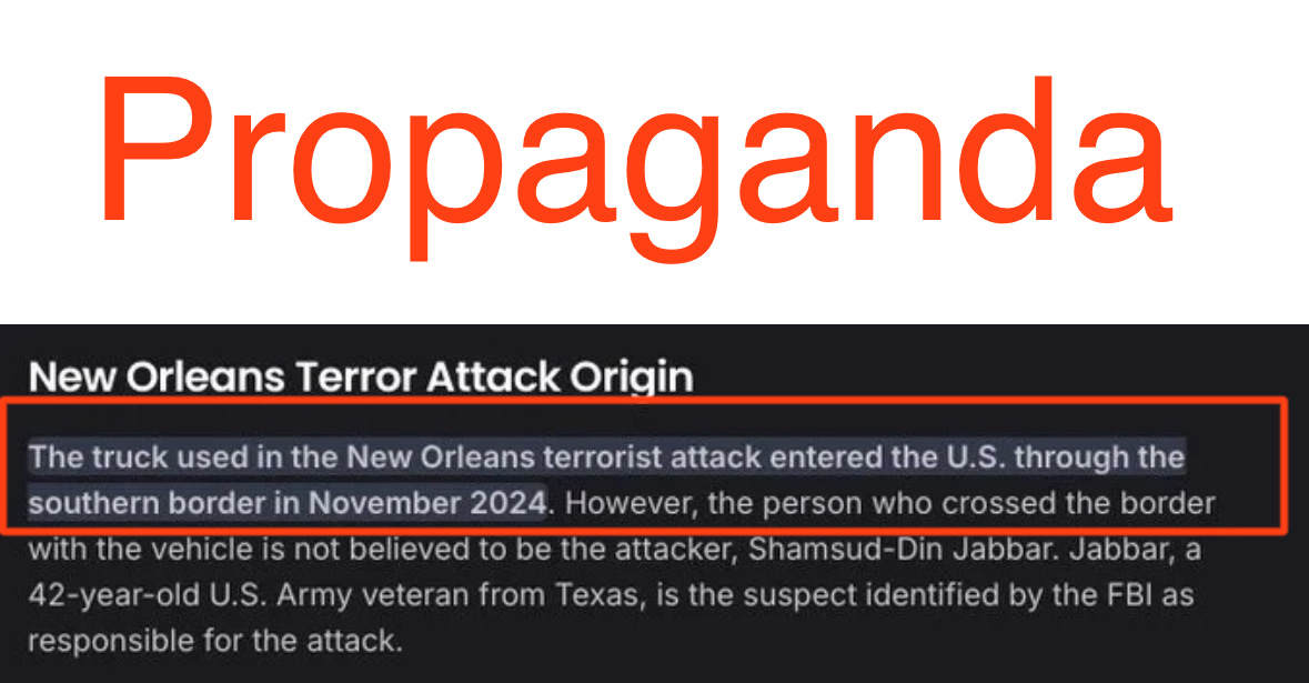 Before any facts were confirmed, Fox News and other right-wing outlets immediately blamed immigrants, pushing a false narrative to stoke outrage. For example, this statement, “The truck used in the New Orleans terrorist attack entered the U.S. through the southern border in November, 2024” is complete propaganda. Not one word of it is true. Yet, Fox News ran with it anyway.
