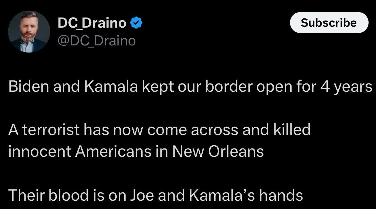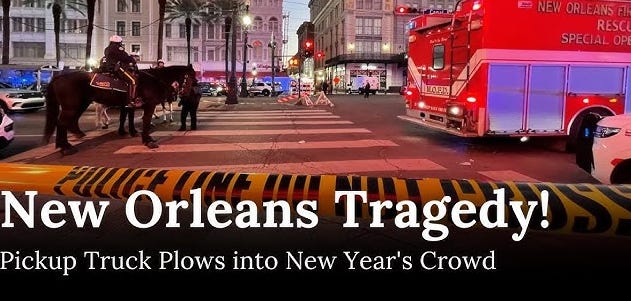 This horrific attack in New Orleans is a tragedy. My deepest prayers for the families of the victims, and my sorrow for the harm caused to our country. I am hopeful the authorities are able to thoroughly investigate the circumstances leading up to this atrocity, and work to prevent future such attacks by holding all those potentially responsible accountable.