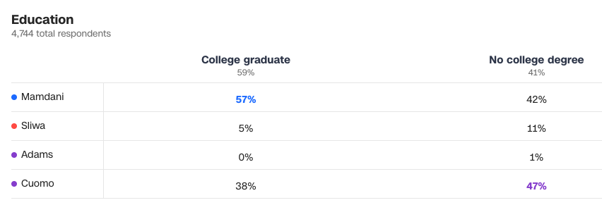 Mamdani fared best among newcomers and people with advanced degrees.