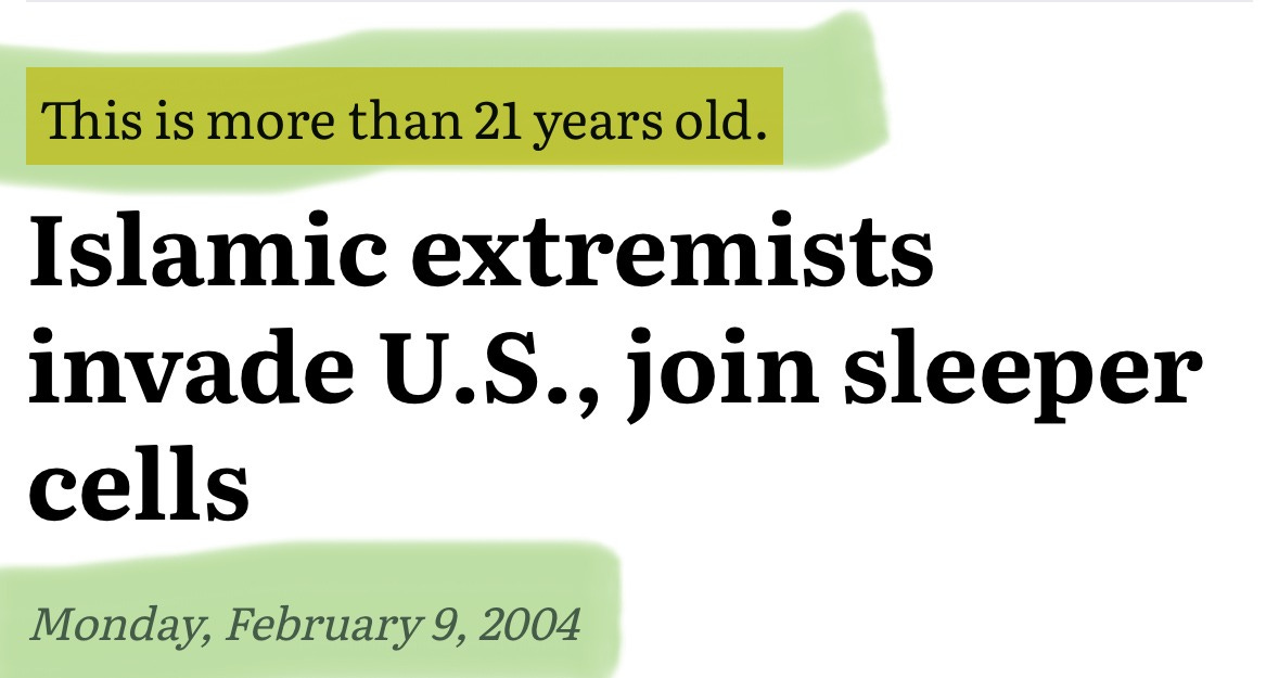A quick trip down memory lane. Back in 2004 right after the invasion, corporate media became a stenographer for the White House to repeat the propagandized claim that “Iraqi sleeper cells are already in the U.S., preparing for terror attacks.”