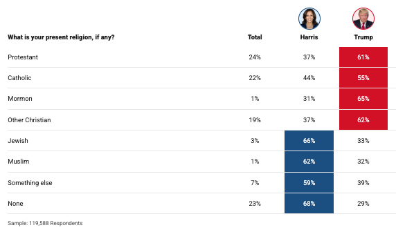 •2024: 62% Harris, 32% Trump