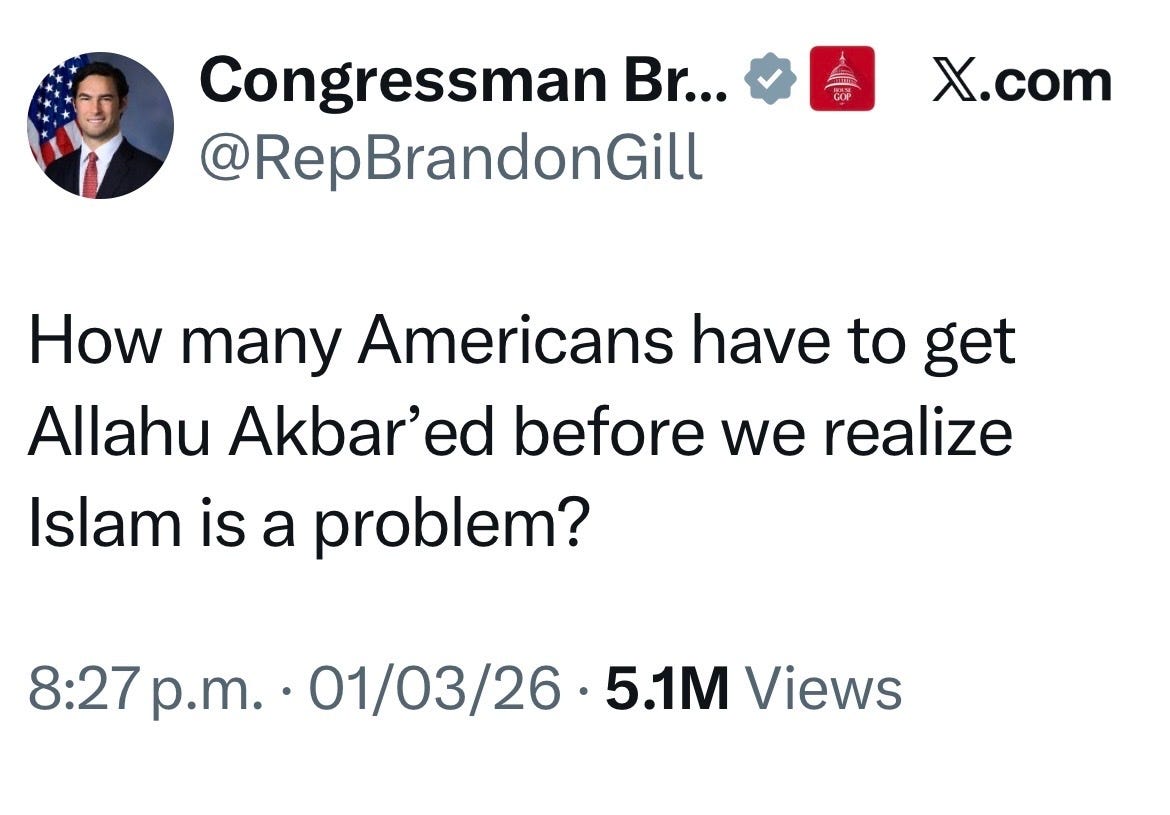 Rep. Brandon Gill of Texas called Islam itself “a problem.”