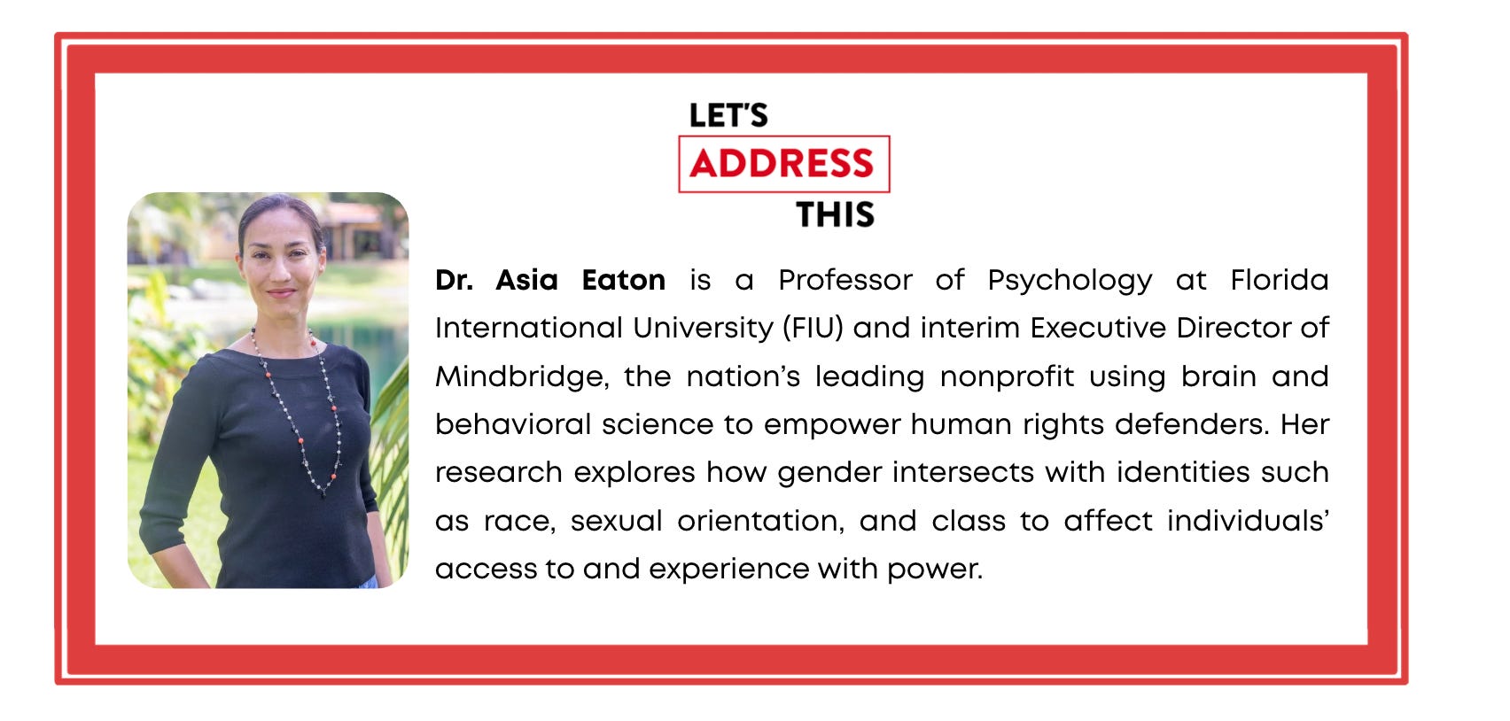 With that—let’s dive into the show! This week we discuss the psychology behind white supremacy, and how we can use science to counter this extremism. I’m excited to host Dr. Asia Eaton, Executive Director of Mindbridge.