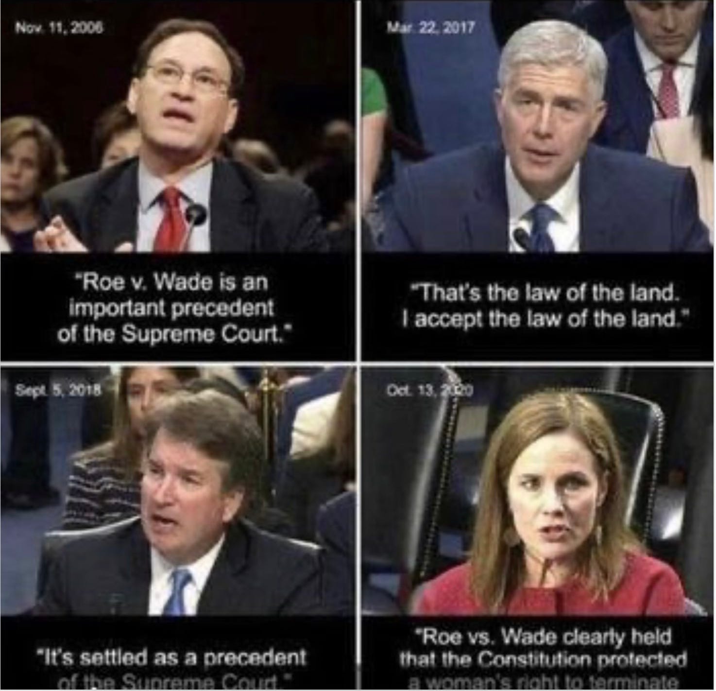 In 2022 the Supreme Court undid half a century of precedent in Dobbs v. Jackson Women’s Health Organization. SCOTUS ruled 6-3 that women do not have autonomy over their own bodies. The Court repealed Roe—despite 72% of Americans favoring Roe, despite all the data that abortion bans do not decrease abortion rates but increase maternal mortality by 24%. The Court repealed Roe, despite four justices—Alito, Gorsuch, Kavanaugh, and Barrett—affirming that they viewed Roe as settled law, settled precedent, and the law of the land.