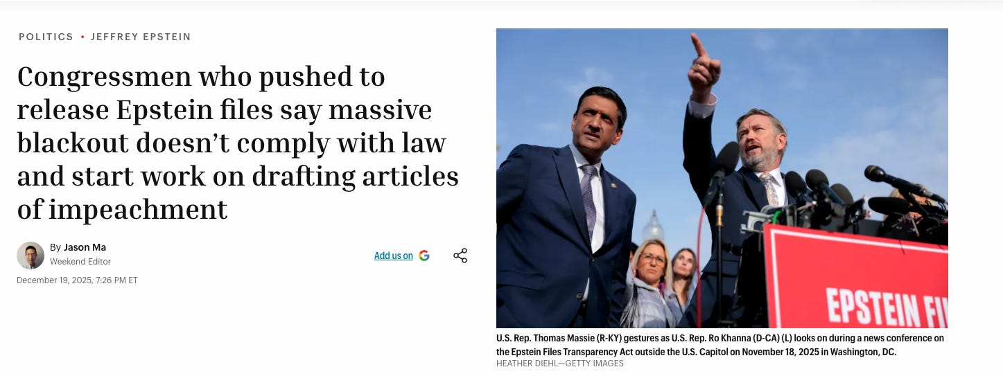 Ultimately, I doubt we will see full transparency until Democrats regain control of Congress and the White House. In the meantime, however, Rep Khanna and Rep Massie are continuing to take action with next logical step of impeachment. It shouldn’t have had to come to this—especially as Pam Bondi famously said “the files are on my desk right now ready for release” (a lie)—yet here we are. Impeachment is no longer a radical demand. It is the minimum constitutional response.