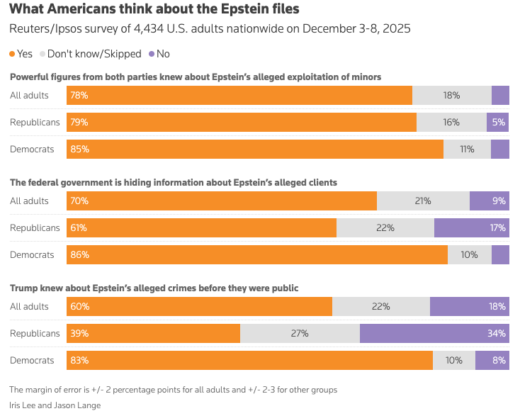 Meanwhile, the public is not losing focus. Not even as Trump threatens war with Venezuela, as the economy cracks under pressure and unemployment increases by 15%, as housing becomes increasingly unaffordable, and as nearly 60% of Americans struggle to make ends meet. If anything, those pressures are sharpening public clarity: a system that protects predators while families suffer is not broken—it is corrupt by design.