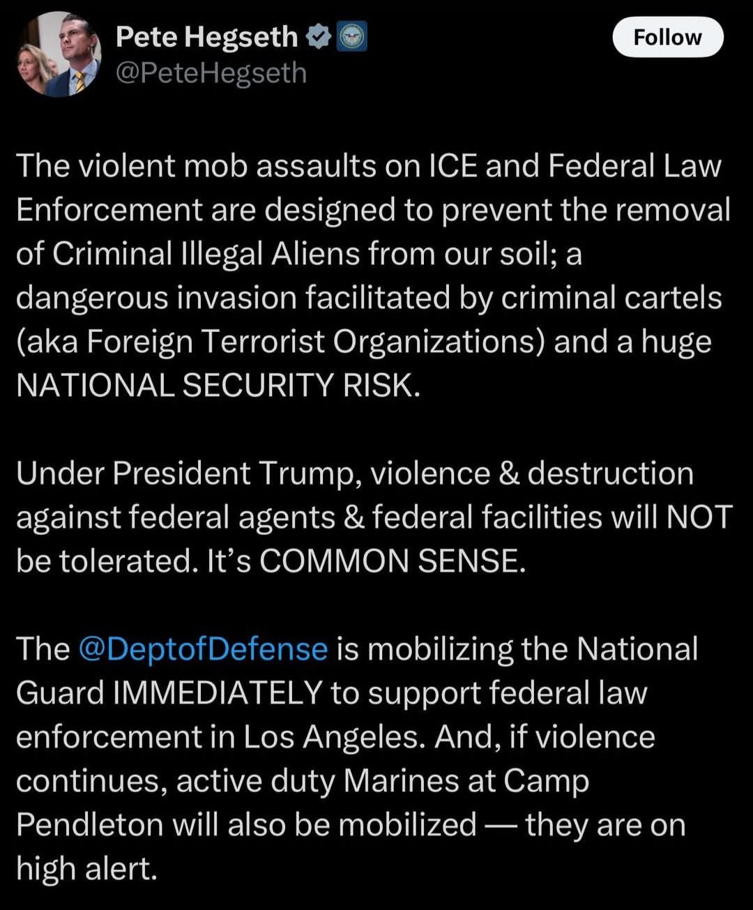 We have to stop the promotion of The Felon's storyline about "oh the terrible riots!" There are very few of The People crossing the line into violence and nothing a few cops can't handle. Most are peacefully protesting. The image of big riots is being orchestrated by The Felon's administration with flash bangs, smoke, indiscriminate shooting of rubber bullets at random loud protesters exercising their right to protest, and the big clouds of tear gas sending protesters running. Trump is making a made-for-TV movie to give himself the cover to occupy a major city in CA as he subjugates and intimidates dissenters.