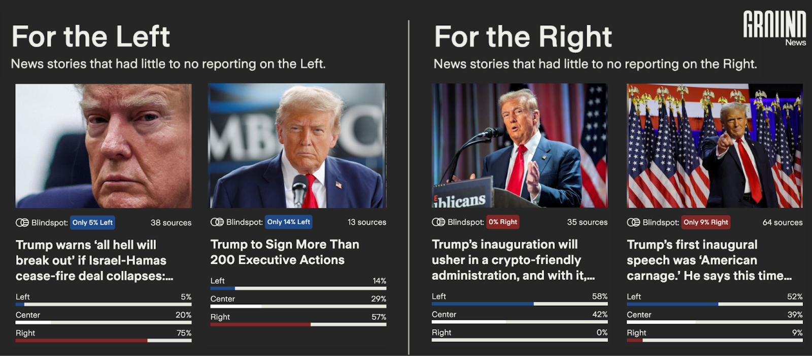 Blindspot Feed: Highlights stories that are disproportionately covered by either the left-leaning or right-leaning media. This helps you see what one side may be ignoring and gives you a more balanced view of current events, reducing echo chambers.
