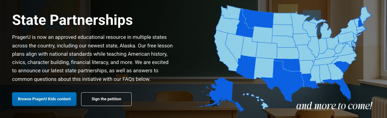 Prager “University” (PragerU) is not a university at all. It has no accreditation, no peer-reviewed scholarship, and no legitimate academic standing. What it does have is dark money from far-right billionaires and political operatives who understand that controlling the next generation’s worldview is the surest path to consolidating power. Yet, it is quickly replacing factual information and reporting, on the taxpayer dime no less. PragerU reports on its own website how its an official approved educational resource in at least 10 states, and growing.