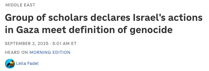 With 500 members, The International Association of Genocide Scholars is the world's largest cohort of genocide scholars. This week they voted on an official statement to determine whether Israel’s actions in Gaza constitution genocide? And surprising no one who has paid attention, 86% percent of those who voted backed the resolution declaring Israel’s "policies and actions in Gaza had met the legal definition set out in Article II of 1948 UN convention on genocide.”