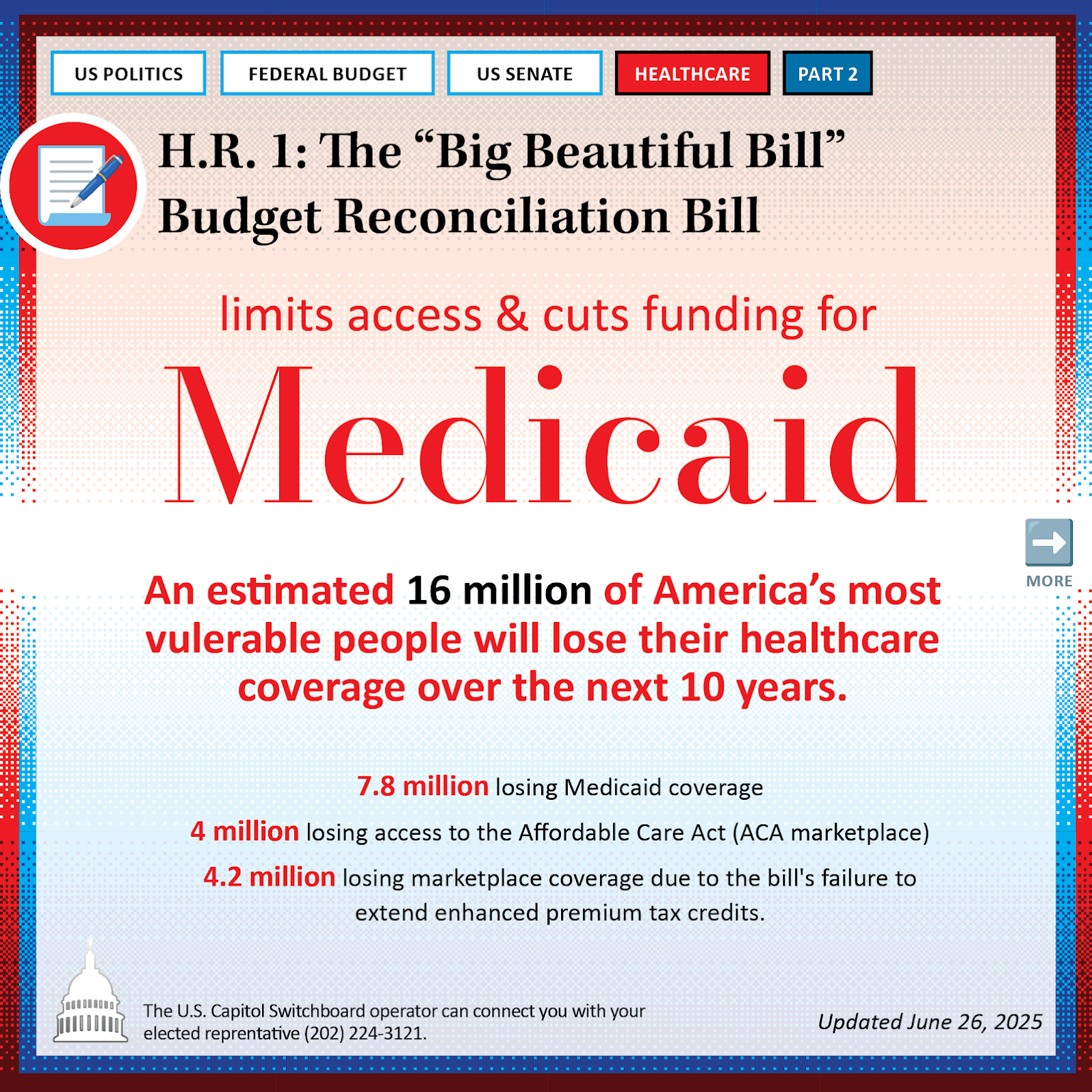 Not long after H.R. 1 passed the House, Republicans themselves admitted they hadn’t read the bill. They didn’t realize it banned AI regulation for a decade, or that it increased the deficit by $5 Trillion, or that it gutted Medicaid for 16 million people. The problem is, most Americans still have no idea what is in this bill. So, in writing about it, I was fortunate to connect with activist and designer