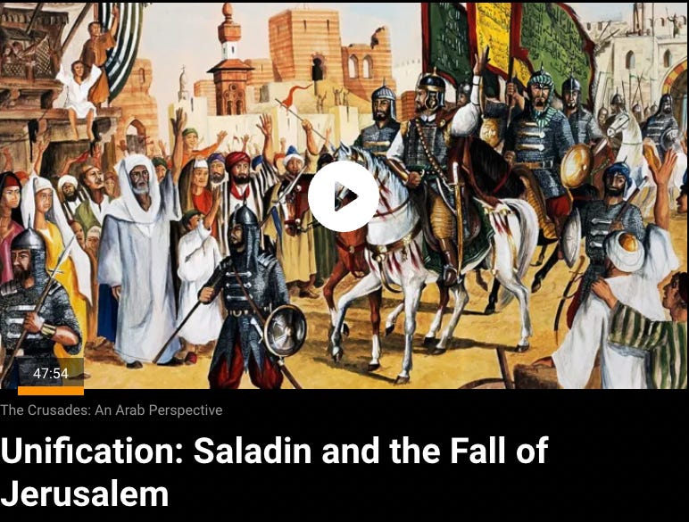 And true to the Constitution of Medina signed some 467 years prior, Jews and Muslims fought side-by-side against the invading army, but lost. Those who survived the war were once again expelled from Jerusalem altogether. That is, until 1187. In 1187, General Saladin launched a successful campaign against the Crusaders and retook Jerusalem, again.