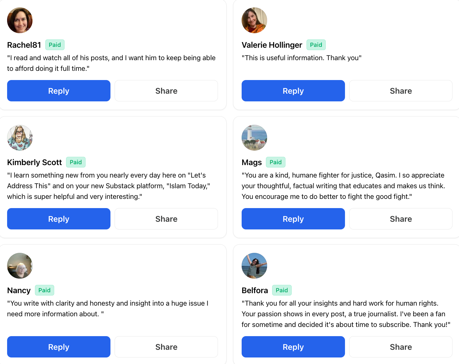 Qasim you do deserve monetary gain, it can't be cheap to do the outreach that you do. Yet lets face it, the people following you via this website don't have unlimited wealth. I'm grateful that you keep FREE subscriptions and if I could afford it I would gladly give you what I see as your worth and I don't even live there! After Trump is dead and gone people will be forced to pay subscriptions, similar to how they used to pay for a newspaper. Now newspapers and televised "truth tellers" will understand fully the way substack tells them the truth. The mainstream media will either join in or opt out according to their "bottom line." Actually several of them have made that choice! Kudo's to you Qasim for fighting for us.