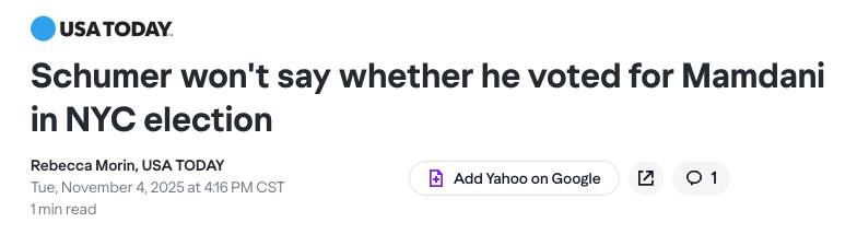 And despite months of false promises claiming he would get behind the Party’s nominee, Schumer ultimately acted the coward that he is and refused to do the bare minimum. So much for “vote blue no matter who,” huh? His junior senator from New York, Kirstin Gillibrand was somehow worse—publicly accusing Mamdani of wanting to wage “global Jihad,” and never once publicly apologizing for her vile remarks.